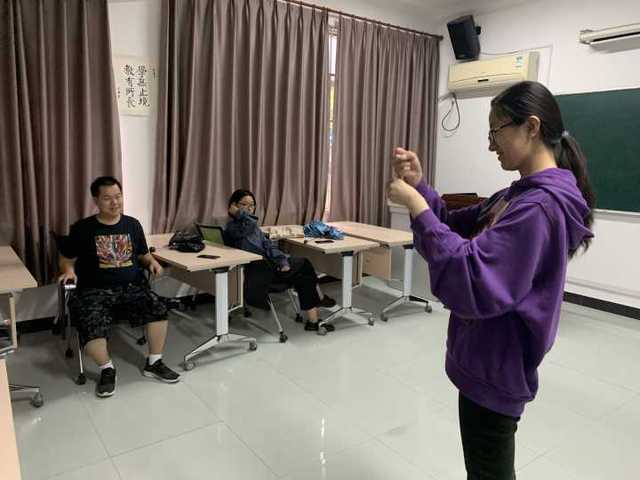 随后,我们进行了“沉默的007”这个游戏,大家围成一个圆圈,先挑一位同学指向另一位,然后被指向的同学需要指向下一位,直到第三位同学,这时他左右两位同学需要立即举起手来,并且在整个过程中,大家需要保持沉默,不能笑出声。然而,这个游戏其实并不“沉默”,一开始总有同学手忙脚乱,不该举起手的时候却把双手高高举起了,还有手举到一半意识到不应该自己举手,而手悬停在半空中的尴尬局面,噗呲一笑也在所难免。