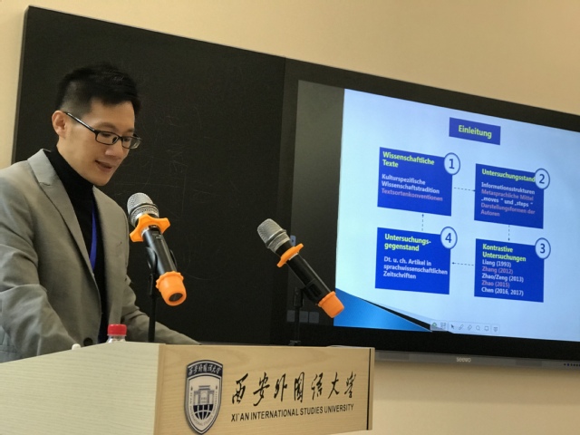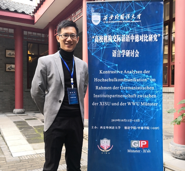 2019年10月11至13日,“高校机构交际话语中德对比研究”语言学国际研讨会在西安外国语大学召开。来自中、德高校的30余名学者齐聚古城西安,就当前日耳曼语言学研究领域中的热门话题展开思想碰撞。Beat365陈琦教授及其课题组成员受邀参加了研讨会,并做大会报告。