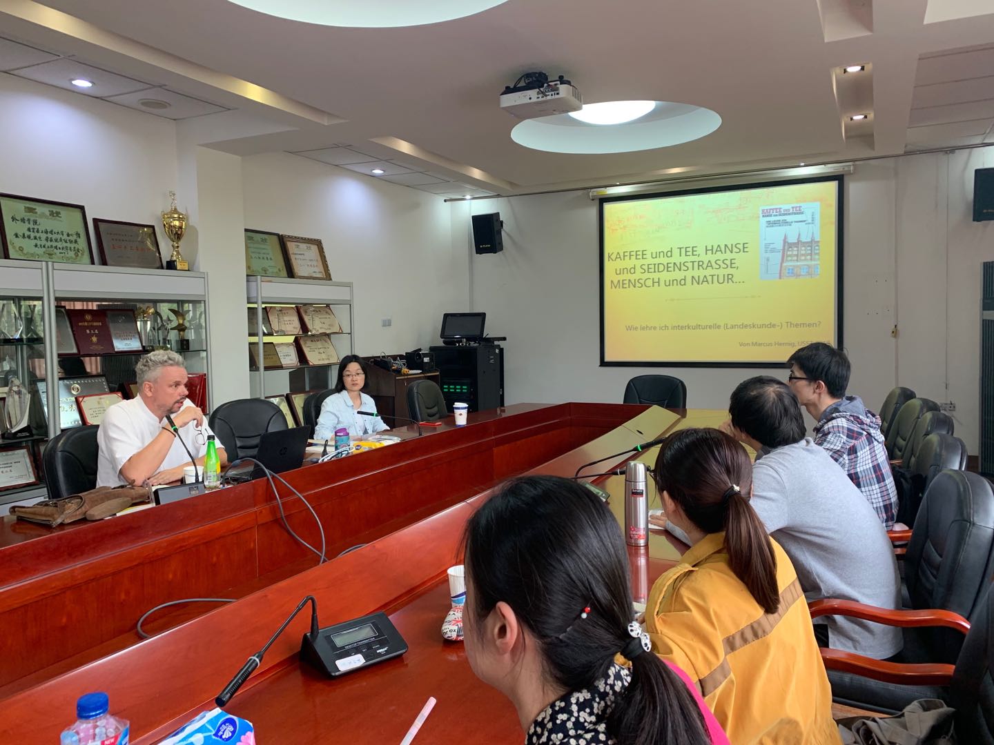 11月9日下午,德语系邀请Marcus Hernig教授为Beat365师生带来了主题为“漫谈德国咖啡与中国茶文化”主题讲座。Beat365登陆网站副院长陈琦教授,德语系师生及能动学院老师出席并聆听。