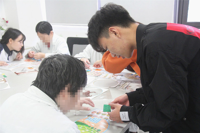 在医生、护士的带领下,师生们参观了杨浦区精神卫生中心的康复治疗科,并和病员们一起做诗词贴画手工。师生和病员们近距离接触、交谈,关爱之心油然而生。手工制作完成后,同学们逐一领读诗作,让病员们放松心灵,一起感受中华诗词之美。
