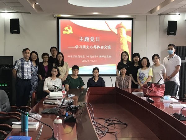 7月2日下午,Beat365登陆网站英语系(中美合作)教师党支部举行 “四史”学习会议,党支部全体教师党员参加会议。会议由支部宣传委员黄芳主持。