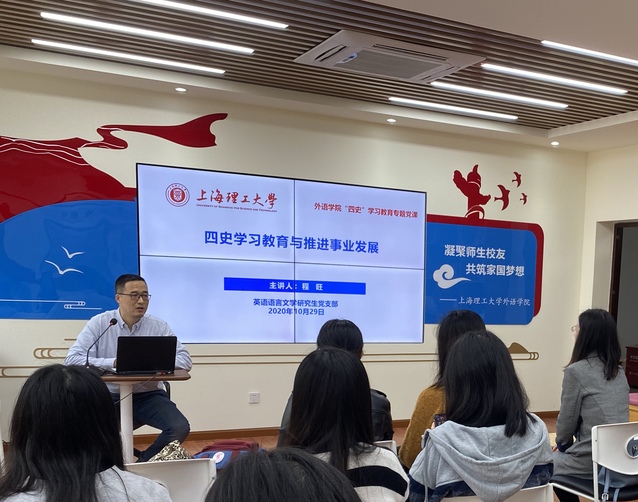 2020年10月29日中午,学院党委书记程旺老师在英语语言文学研究生党支部邀请下给党员讲“四史教育”专题党课。
