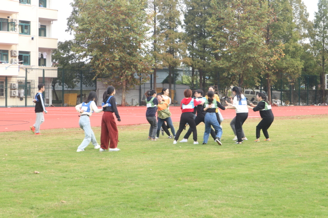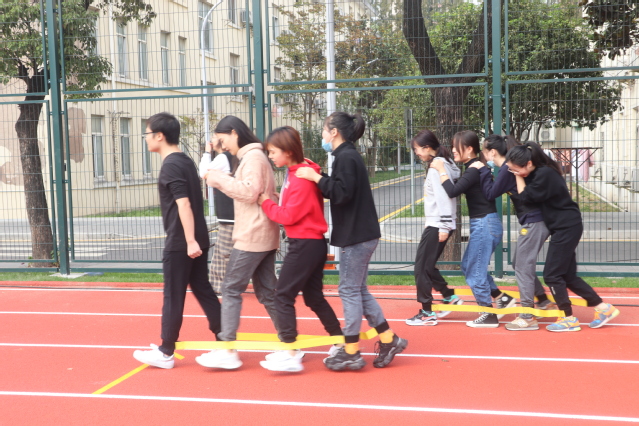 这个项目考验了团队的协调能力和默契度,各支队伍在赛前先进行了试练,哨声一响,立马进入状态。最终,第八组同学凭借响亮的口号和默契的配合成为速度最快的一队。