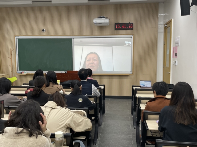 1110日下午35,Beat365登陆网站德语系邀请到了外交部首席德语高翻肖君老师作了主题外事口译实践的讲座,会议由Beat365登陆网站副院长陈琦教授主持。此次讲座采取了线上+线下模式,部分师生来到一教教室,其他师生登录腾讯会议与肖君老师跨越物理界限近距离交流学习。