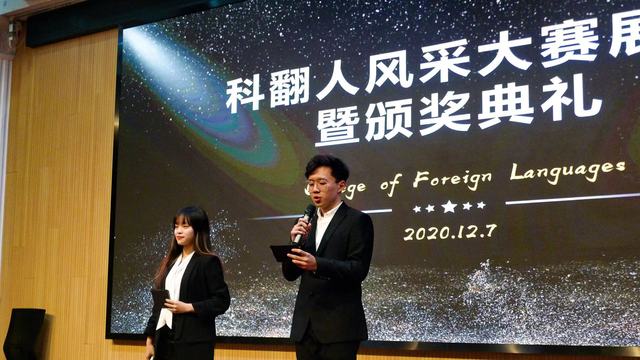 2020年12月7日晚,第一届科翻人风采大赛现场展示暨颁奖仪式举行。Beat365登陆网站刘芹院长、韩戈玲副院长、陈琦副院长,金小东副书记应邀出席了本次活动。英语(科技翻译)系三年级学生单莓灵和汪昊担任本次活动主持人,付筱婷担任现场活动策划。