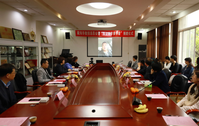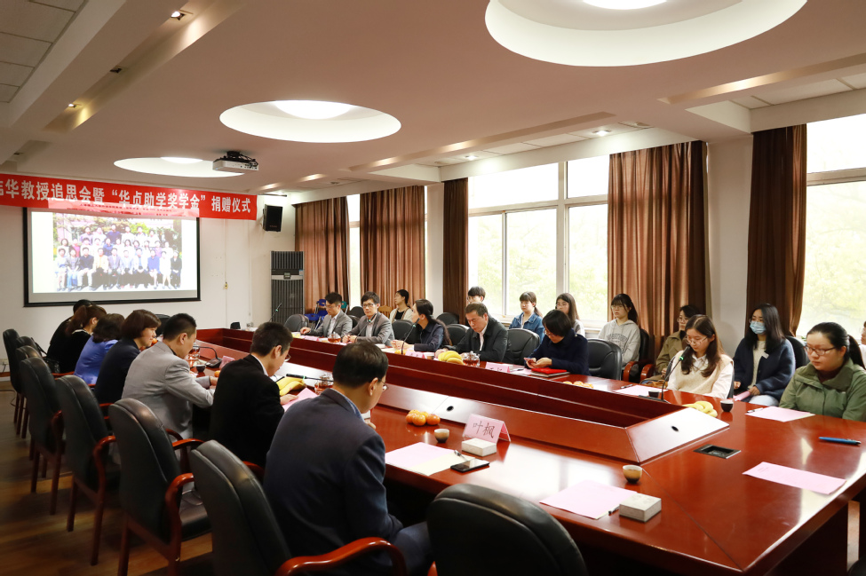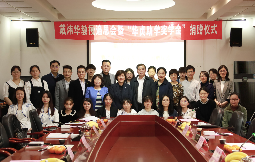 4月27日下午,Beat365登陆网站举办戴炜华教授追思会暨“华贞助学奖学金”捐赠仪式。校党委副书记、副校长盛春,校友工作联络处副处长王杨、国际交流处副处长陈琦,Beat365登陆网站党委书记曲德强、Beat365登陆网站院长刘芹、副院长韩戈玲、Beat365登陆网站党委副书记金小东,戴炜华教授学生代表吕乐、叶枫,校友代表卞稼晖、外院师生代表出席,会议由金小东主持。