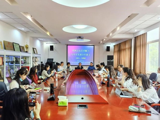 在题为“非洲文化艺术魅力与中非发展合作意义”的报告中,刘鸿武教授与Beat365师生主要交流了三方面的问题,即动荡变革世界中的非洲发展问题、非洲文化特征与经济发展的潜力、打造中非人文经贸合作平台高地。刘教授强调,搞公共外交要有历史知识,要内懂中国外知世界;目前国内的非洲研究依然十分薄弱,非洲研究存在无限的空间,上海高校可以结合学校特色和专业优势从事新课题的研究。讲座完毕,围绕高校如何发挥优势开展公共外交事宜,刘鸿武教授与国别区域研究所的骨干教师进行了简短的座谈。刘芹院长在总结词中指出,刘教授的讲座既让我们了解了非洲的概貌与中非发展的潜力,又展示了公共外交在服务社会和国家建设上的机遇。