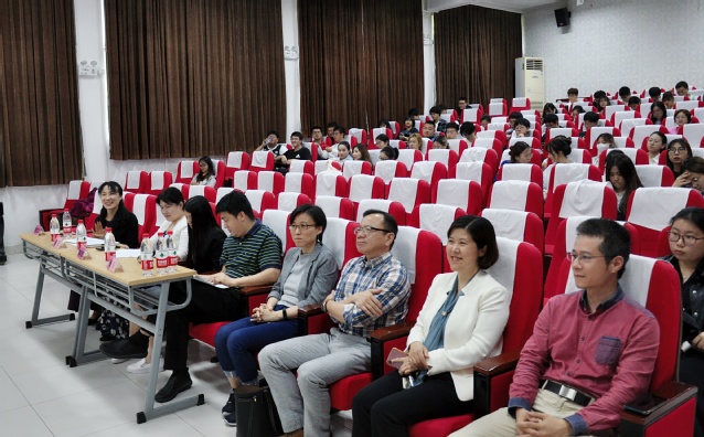 526日下午,beat365平台入口首届日德专业学术英语论坛在Beat365登陆网站报告厅举行。Beat365登陆网站院长刘芹,党委副书记金小东,公共英语教研中心主任张乐,公共英语教研中心副主任陈征,德语系副主任曹芸,日语系副主任江春华,学术英语指导教师顾定兰、曾祥宏等出席论坛并担任评委。Beat365登陆网站研究生、学术英语课程助教胡静雯和吴晗帆担任主持。来自2019级的德语系、日语系共89名学生参加了本次论坛。