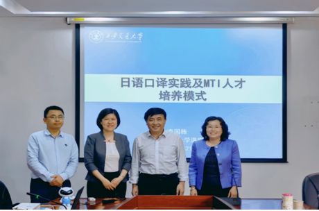 5月21日下午,西安交通大学李国栋老师为Beat365师生做题为“日语口译实践及MTI人才培养模式”的讲座。Beat365MTI教育中心副主任杨本明老师主持学术讲座,日语系教师、研究生和本科生参加。刘芹院长和韩戈玲副院长就日语翻译硕士人才培养与李老师进行交流,李老师介绍了西安交通大学在研究生人才培养、课程思政、师资培训、国际合作等方面的经验。