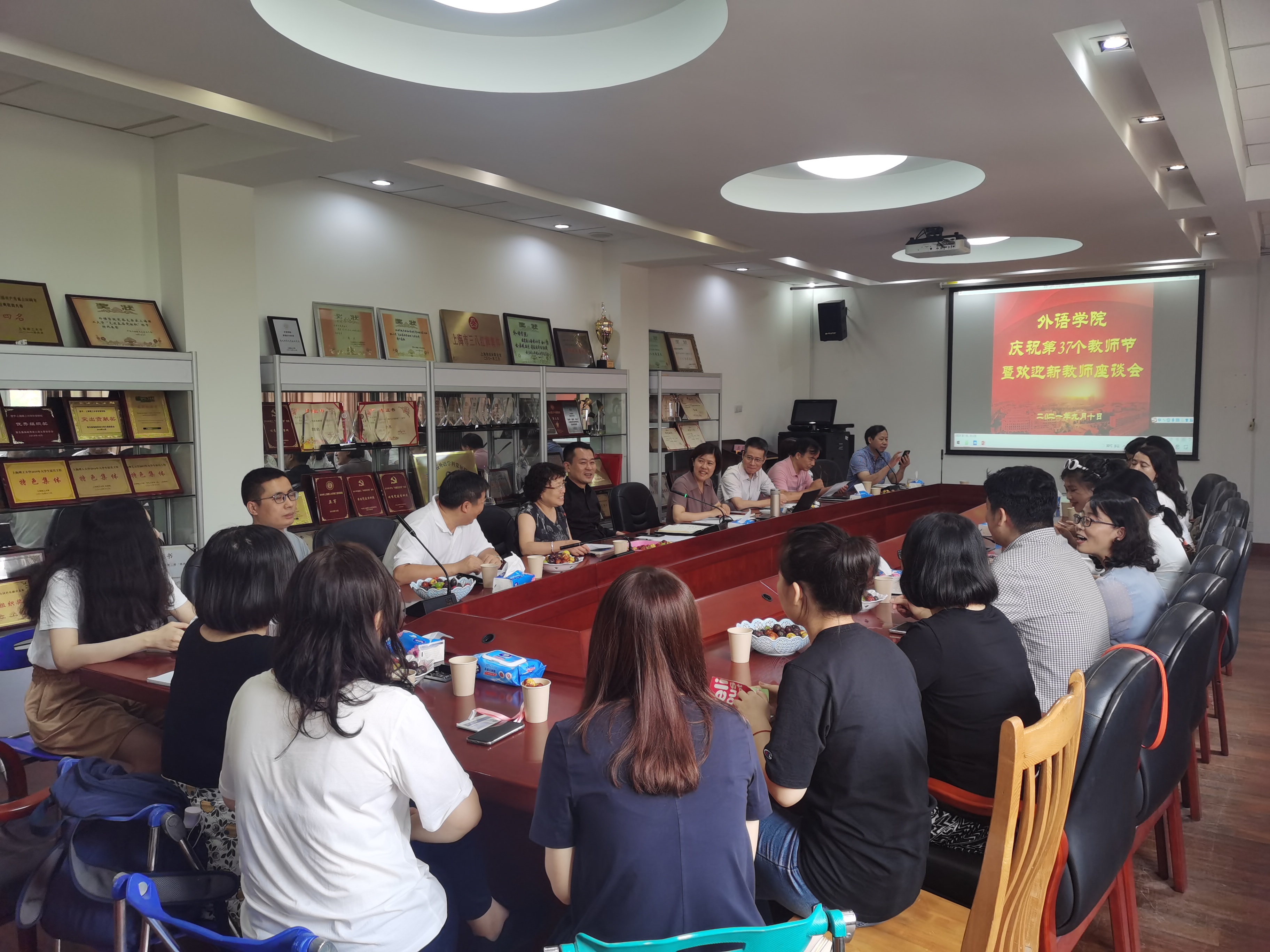 9月10日,Beat365登陆网站在学院会议室举行庆祝第37个教师节暨欢迎新教师座谈会,学院党政领导、工会负责人、各系部所负责人、支部书记、新进教师参加了座谈会。会议由学院党委书记曲德强主持。