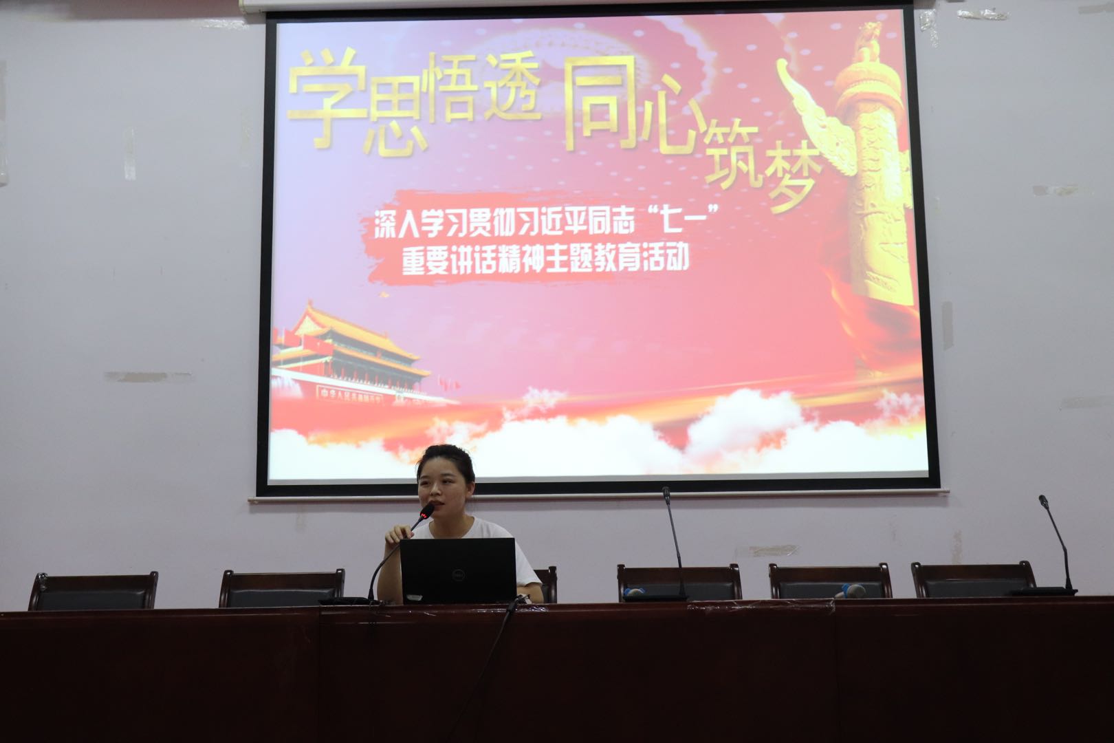 首先,她带领大家全面认识了习近平同志“七一”重要讲话精神。习近平总书记的重要讲话,回顾光辉历程、擘画光明未来,思想极为深刻、内涵十分丰富,具有非常深远的政治意义、理论意义、实践意义。习近平总书记谈到了中国共产党一百年来的丰功伟绩,党带领全国人民摆脱了绝对贫困,走上了全面小康、共同富裕的康庄大道,党始终同人民在一起,为人民利益而奋斗。同时,总书记也总结了共产党共产党执政规律、社会主义建设规律、人类社会发展规律。我们要坚持马克思主义基本原理同中国具体实际相结合、不断推进马克思主义中国化时代化,坚持走中国特色社会主义道路,坚持推进构建人类命运共同体。我们要认真学习领会,全面贯彻落实,以史为鉴、开创未来,把伟大建党精神继承下去、发扬光大,为实现人民对美好生活的向往不懈奋斗,努力为党和人民争取更大光荣。