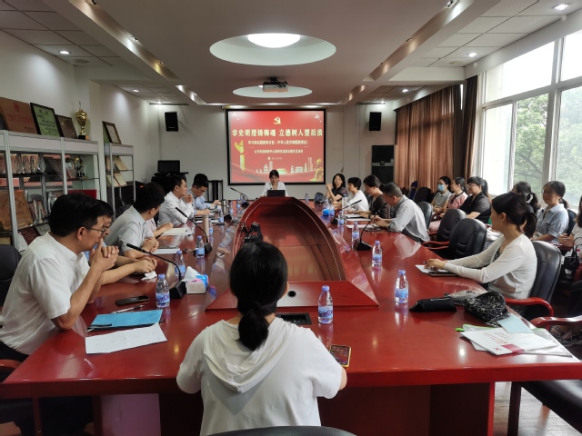在集体讨论和分享环节,刘芹院长结合自己的入党经历和工作经历畅谈了党史学习教育与教学工作有效融合的方法,鼓励党员教师们积极创新地抓好党史教育的课程融入,以更加鲜活的方式厚植爱党、爱国、爱社会主义的情感。支部副书记陈勇刚、郑大湖,公共英语教研中心各课程组的党员代表邓永平、金朝晖、左秀媛等老师都从实践出发分享了党史学习教育成果和贯彻落实新修订的《教育法》的教学实践。最后,学校党史学习教育巡回指导组的孙畅老师回顾点评了本次主题党日活动,高度评价了支部党史学习教育现阶段的工作,并对下一阶段的工作提出了查漏补缺的建议。