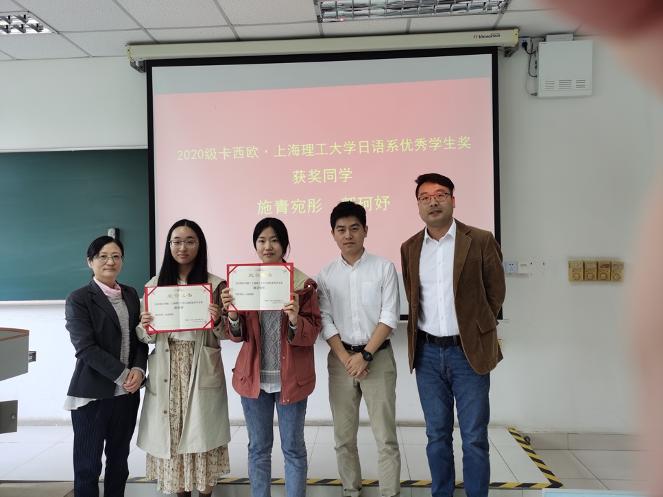 11月2日下午,卡西欧・beat365平台入口日语系优秀学生奖”颁奖仪式在四教222教室举行。日语系2021级全体学生、日语系主任刘曼老师、外事秘书毛伟老师出席。2020级学生施青宛彤、郭珂妤两名同学获奖,作为奖励,两位同学分别获得2000元助学金和价值1000元的卡西欧手表。卡西欧上海公司电子教育部的庞立阳经理、日语系刘曼老师为获奖的两名同学颁奖并颁发荣誉证书。颁奖仪式后,庞经理向与会的大一新生同学介绍了一些优秀日本企业的发展现状,介绍了当前的就业形势并通过其个人经历介绍了作为日语系毕业生如何学好专业知识、走上社会,实现自己的人生目标。最后,庞经理介绍了卡西欧电子词典在日语学习过程中的作用和科学的使用方法,鼓励大家努力学习,奋发进取。此次颁奖活动不仅是对两名优秀学生代表阶段性专业学习成果的肯定,更有助于激励日语系大一新生同学把握时间、珍惜在Beat365登陆网站四年的宝贵时间,努力提高自身专业能力。这次颁奖及讲座活动激发了新生的专业学习热情,将有助于Beat365日语系培养出更多高素质的外语人才。