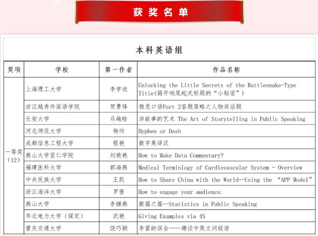 本次活动自今年4月启动以来,共征集到全国640所学校的1436件微课作品。经各院校初选、省级复赛和全国决赛评审三个阶段,本科英语组的112件微课作品成功晋级国家奖项的评选,其中的38件优秀作品,通过教师线上说课展示、专家线下集中评审的方式角逐全国优秀作品一、二等奖。经专家评审组严格审核选拔,评选出本科英语组优秀微课作品国家一等奖12名、二等奖26名、三等奖74名。李学欣老师以颇富创意的选题视角、明晰严谨的教学设计、新颖独到的教学方法和富于感染力的说课呈现,赢得了评审专家组的高度肯定和一致好评,最终在上海市和国家级评比中斩获两项桂冠。