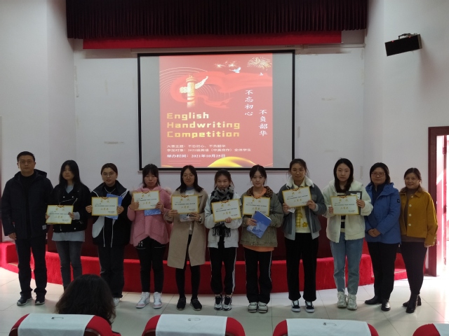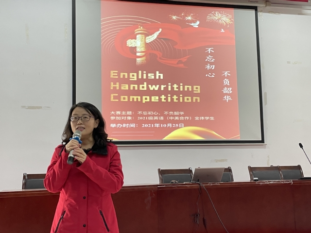颁奖仪式上,英语系(中美合作)主任黄芳为荣获一等奖的同学颁奖,副主任贾晓云、祁小雯和沈谢天为荣获二等奖的同学颁奖,评委老师郭霞、胡漫及吕馨桐为荣获三等奖的同学们颁奖。颁奖环节结束后,黄芳主任为本届书写大赛致闭幕词。她勉励全体获奖同学以大学生涯的首度获奖为契机,立志高远、发奋学习,争取在更高级别的学科竞赛平台上展示个人风采,为学校、学院和系部争取更大的荣誉。