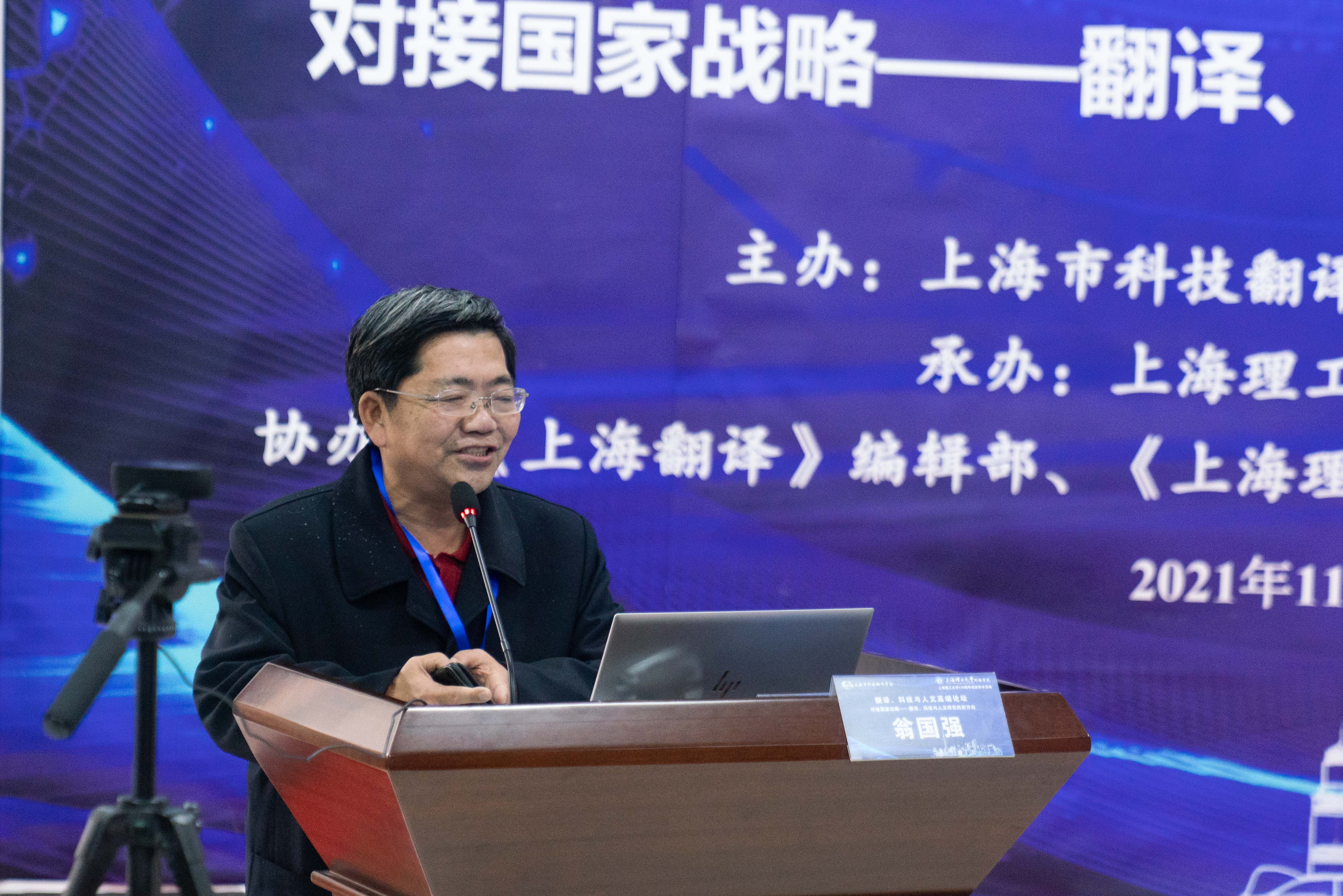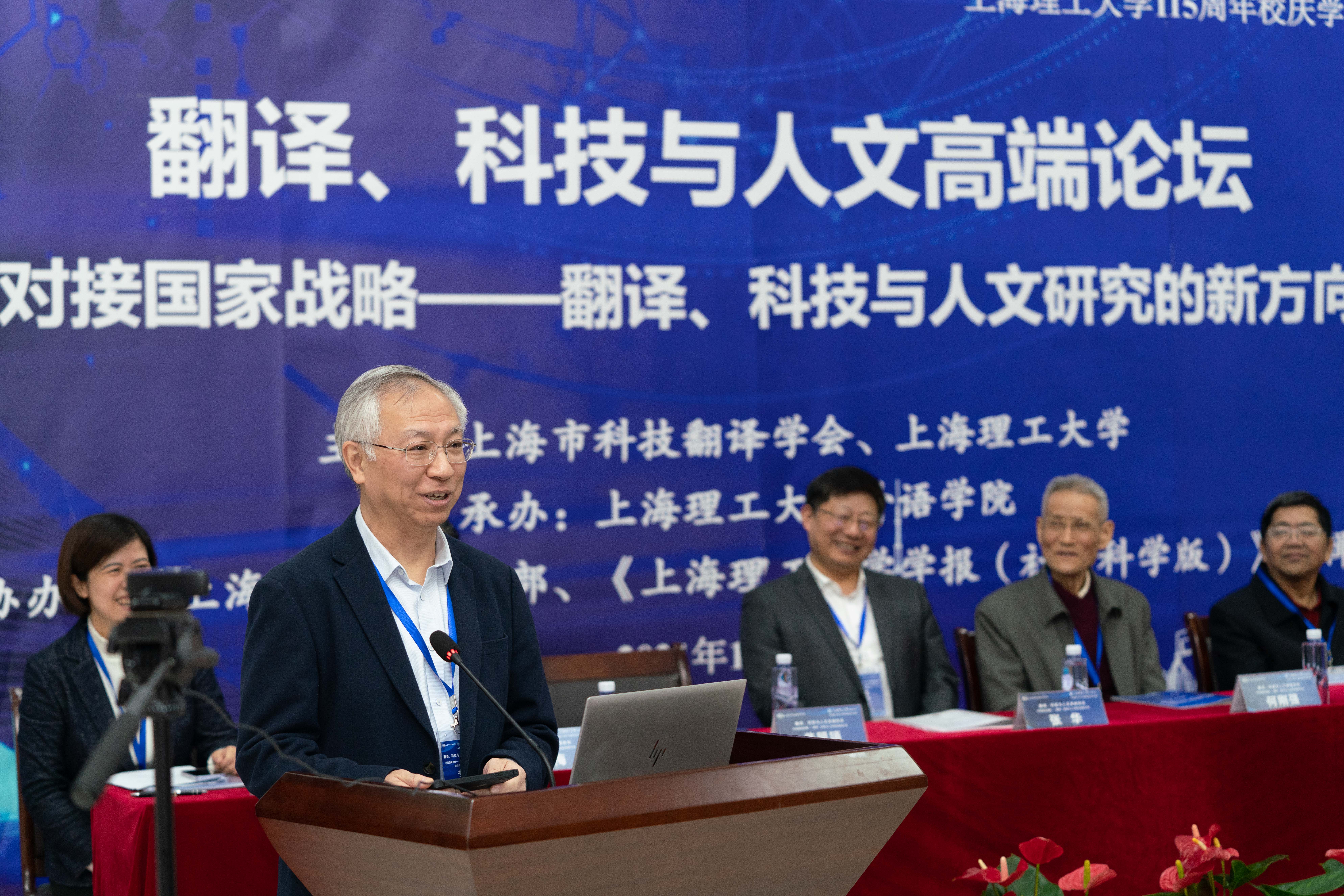 黄友义在致辞中从国家政策支持的层面说明了翻译人才培养和翻译事业发展的重要性。指出科技翻译是构建人类命运共同体的路径之一,对外科技翻译是国际传播的重要组成部分。他在强调国际传播时代对外翻译具有特殊使命的同时,提出了新时代背景下建立翻译人才培养机制等举措。柴明熲在致辞中表达了对主办方和承办方的感谢。他通过讲述历史故事说明翻译一直是推动中华民族发展的源动力。他还提及近期国家关于语言服务的相关政策,指出翻译是中国参与全球治理、推动中国文化走出去的关键因素,此次论坛契合时机,具有重要意义。何刚强代表上海市科技翻译学会对线上线下的各位专家和全体参会人员表示热烈的欢迎。他指出此次论坛的主题对接国家战略,议题既有实践也有理念的探讨,引导我们深入思考翻译的定义和新时代走向。他希望此次论坛能对相关高校的翻译学科产生积极的影响。