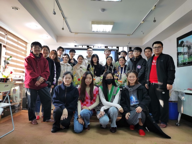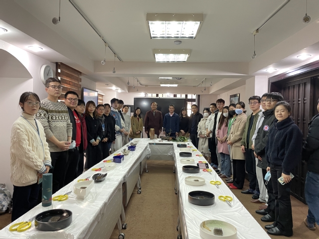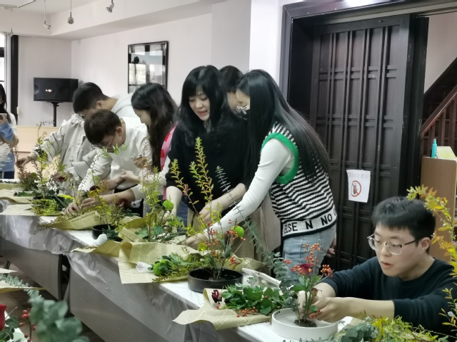 最后指导老师做点评,拍照留念。谭芳其表示,花道是一种集修身、社交、技艺等多个文化领域于一身的艺术,集中反映了人的自然观念、美育意识和伦理观念,对了解日本文化有很大的帮助。 此次活动使大家对插花艺术有了更多了解,在实践过程中提高了审美能力,陶冶了情操,增强了对国际文化的了解。