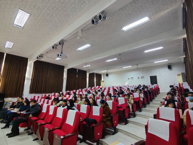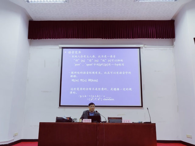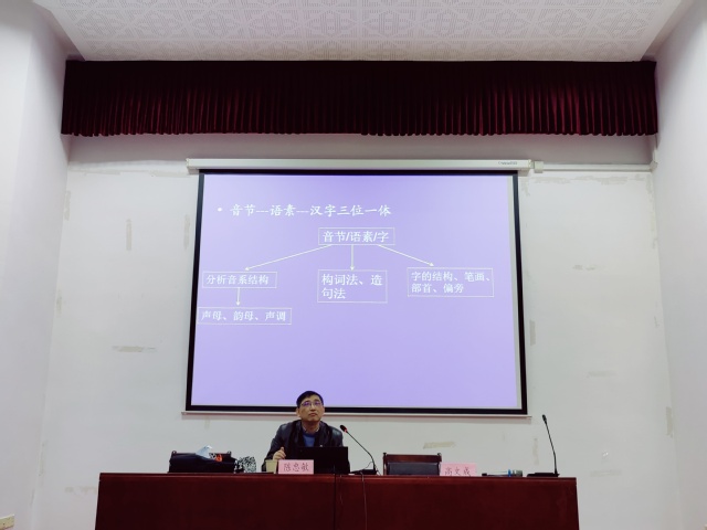 陈教授首先介绍语音学的研究历程,阐述国际音标(IPA)的基本原则——“一音一符,一符一音”。陈教授表示,可以从发音生理学的角度给语音分类、分段、分特征,区分元音、辅音、超音段等语音单位。他向同学们展示不同语言各单位的层级组合关系,指出人类语言特点:从数量最少的语言单位排列组合成数量多的高一级语言单位,最后形成无限多样的句子,从而明确语音学和音系学的研究对象。接着,陈教授具体介绍现代汉语的语音特点,从单音节作为基本单位入手,详细阐述语素是汉语习得的枢纽、音义结合的最小单位、音节-语素-汉字三位一体等汉语语音特征,说明普通话的声母韵母及其配合关系,论证汉语语音的复杂多样性是因为一个阿拉伯字母可能表示两个或多个音素,有时一个汉语音素会用几个字母拼写。最后,陈教授介绍了汉语拼音方案的拼写规则以及汉语中的语音变异等。