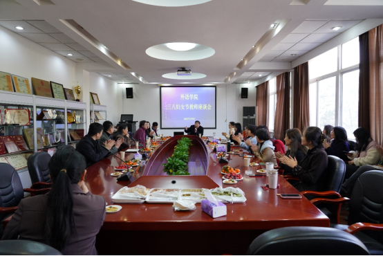 在春风送暖、玉兰花绽放的美好时节,迎来了第112个“三八”国际妇女节。为了进一步营造更加和谐、民主、温馨的工作氛围,学院于3月8日召开了“庆祝三八节座谈交流会“。学院党委书记曲德强、党委副书记金小东、副院长张乐等学院领导出席,学院2021年度考核优秀教师、2021年度学院嘉奖教师、退休教师代表、学院工会委员以及各系部的部分教师代表参加了本次座谈会。会议由工会主席高文成主持。