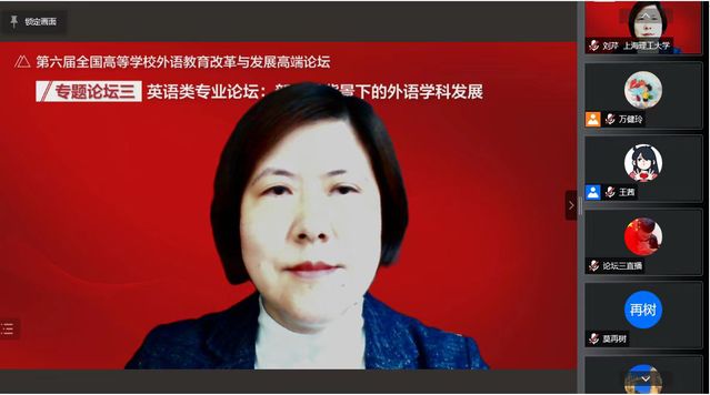 2022年3月19-20日,第六届全国高等学校外语教育改革与发展高端论坛在线上召开,主题为“理解中国 沟通世界”。会议由北京外国语大学、教育部高等学校外国语言文学类专业教学指导委员会、教育部高等学校大学外语教学指导委员会与中国高等教育学会外语教学研究分会联合主办,浙江大学与湖南师范大学协办。全国多所高校组织外语院系教师集体观看,数十万外语教育者云端相聚,共探百年变局下中国高等外语教育发展新思路,共创人类命运共同体格局下中国高等外语教育新境界。