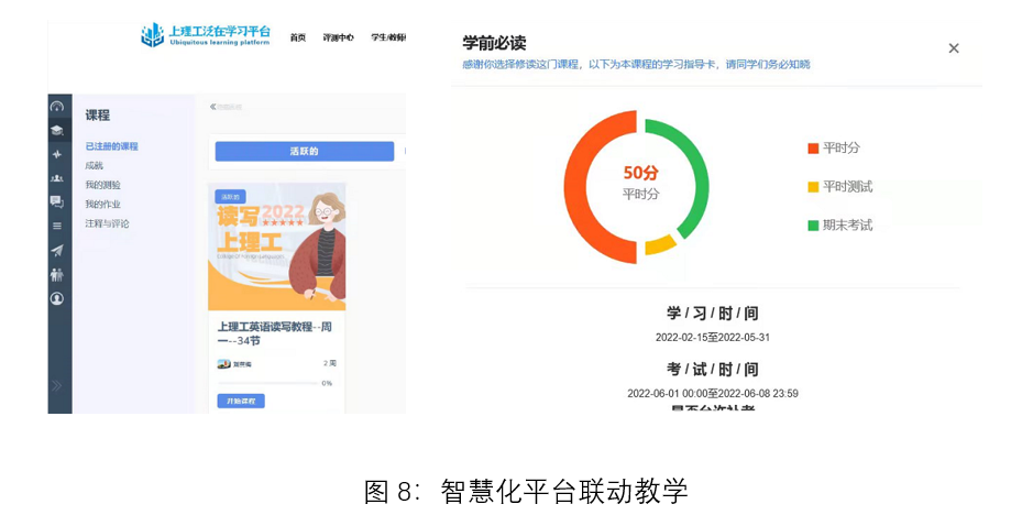 在线上教学期间,学院教学尤为注重培养学生的自主学习能力。大学英语核心课程《学术英语读写》的25名授课教师除了利用一网畅学、腾讯会议、钉钉等平台开展线上教学,还使用了智慧树SPOC课程和上理工泛在学习平台,鼓励学生参加主题讨论、在线测试等学习活动,变被动式教学互动为主动式互动,提升学生在教学中的自主性、参与度,确保全部54个教学班学生的在线教学工作正常顺利进行。