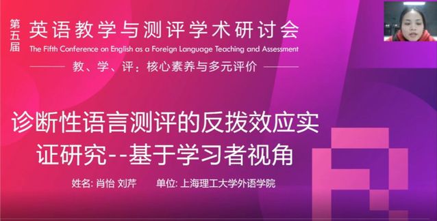 Beat365刘芹教授指导的2021级外国语言文学硕士研究生肖怡、张田园分别于线上作题为“诊断性语言测评的反拨效应实证研究--基于学习者视角”和“疫情背景下中国理工科大学生英语自主学习能力评价探究”的论文报告。Beat365研究生参会并作学术发言,展示了Beat365师生的风采,提升了Beat365的学术声誉。