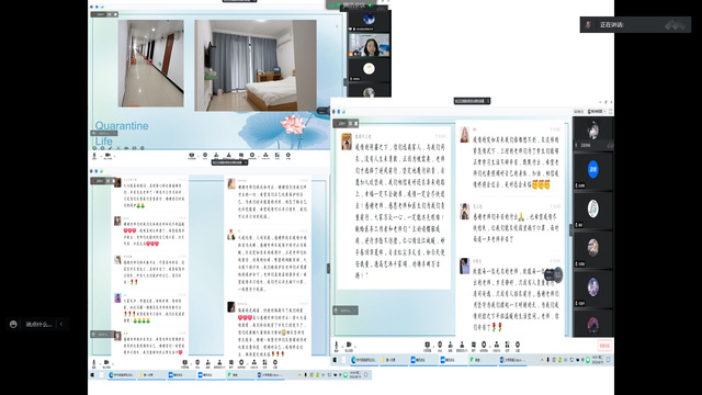 在《大学英语2》课堂中,陈钰老师和同学们一起探索了“Overcoming Obstacles”(“克服困难”)这一单元主题。在口语交流环节,三名同学向全班同学分享了他们的防疫抗疫之路。他们用英文讲述了自己在家里、在校体育馆、在宾馆接受健康观察的经历,用生动的图片分享了他们的生活学习状态。三位同学展示了面对艰苦时的乐观精神和克服困难的智慧和勇气,其他同学也用中英文表达了坚定信心、积极抗疫的态度。