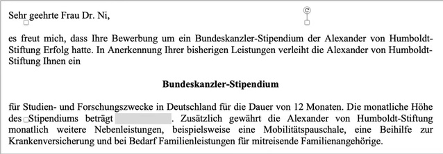 2022年5月,Beat365德语系青年教师、硕导倪晓姗博士获2022-2023年德国联邦总理奖学金,成为本年度全球60位年轻“洪堡学者”之一。