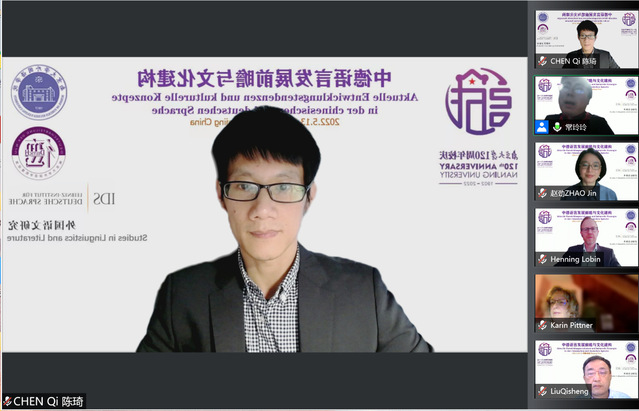 由南京大学外国语学院德语系、莱布尼茨-德国语言研究院(IDS)联合举办的“德汉语言发展前瞻与文化建构”国际学术研讨会2022 年 5 月 13 日-15 日在云端召开。会议主要围绕理论模式对语言研究发展的意义、德汉语言本体对比研究、德汉语言中的文化和精神承载、语言学与语料库研究以及翻译过程的行为实验研究等五大课题,来自南京大学、北京大学、浙江大学、复旦大学、同济大学、北京外国语大学、beat365平台入口、德国慕尼黑大学、波鸿大学、哥廷根大学、图宾根大学和A&HCI期刊主办单位莱布尼茨-德国语言研究院等国内外知名高校和科研机构的专家学者通过报告、学术讨论和经验交流以加深对“语言和文化”生态概念的理解。