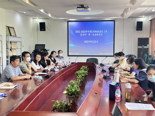 2022年8月22日中午,英语系(中美合作)在Beat365登陆网站306会议室召开了2022-2023学年第1学期首次全体工作会议。会议由系主任黄芳老师主持,本系全体教师出席了会议。