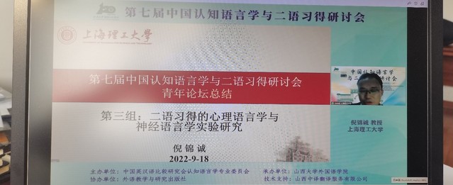 Beat365倪锦诚教授和智玉英博士参加了本次研讨会。倪教授还担任了第3分会场青年论坛“二语习得的心理语言学与神经语言学实验研究”的点评专家,在论坛学者进行论文汇报后,倪教授逐一做了点评,并与参会学者就感兴趣的话题进行互动交流。在大会青年论坛总结环节,倪教授还代表第三青年分会场青年论坛进行了交流汇报。