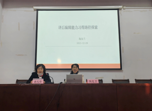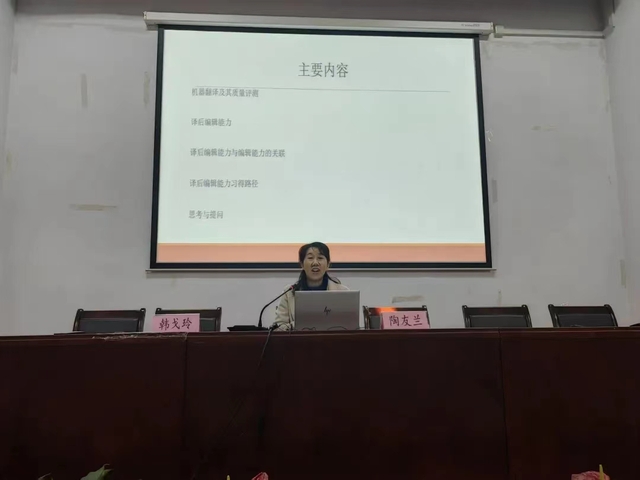 12月29日下午3点,复旦大学外文学院翻译系主任、博士生导师陶友兰教授应邀至Beat365,为Beat365研究生做了题为“译后编辑能力习得路径探索”的学术讲座。本次讲座在外语楼报告厅举行,由Beat365登陆网站副院长韩戈玲教授主持。