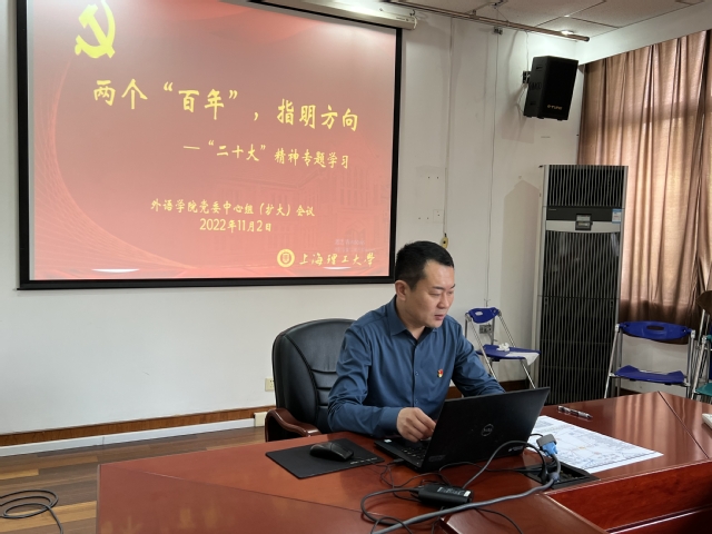 院长刘芹结合学院工作介绍了学习二十大报告的心得体会与要求。她讲到,二十大报告强调要坚持科技是第一生产力,深度实施科教兴国战略。Beat365登陆网站要在学好二十大精神的同时,贯彻好、落实好有关精神,要配合好学校的科技发展,着力加强在科技翻译、对外文化传播以及公共外交方面的工作。学院近日召开的科技翻译与传播论坛是一次全新的尝试,展示了我们在科技翻译方面取得的成绩。她指出,学院要结合学校特色,发挥好上海公共外交学院的平台功能,为中国特色大国外交工作培养好人才,并做出外语人的贡献。