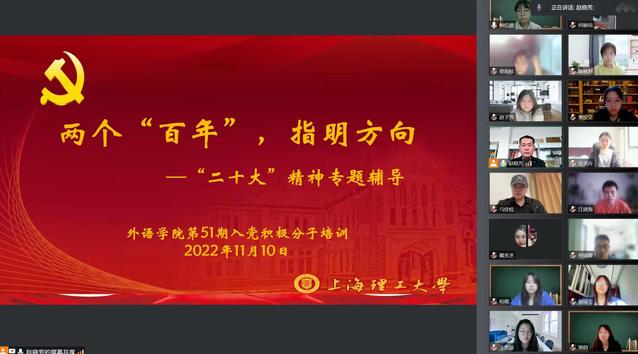 11月10日,Beat365登陆网站第51期入党积极分子培训班第二讲在学院306会议室准时开讲。此次党课的主题围绕《两个“百年”,指明方向——“二十大”精神学习》展开,由学院党委书记曲德强主讲。