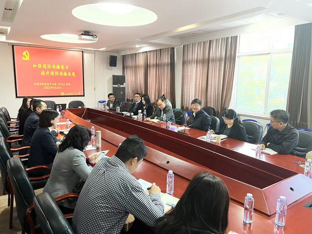 11月23日下午,Beat365登陆网站党委围绕“加强国际传播能力,提升国际传播效能”主题举行中心组(扩大)巡学旁听学习会,深入学习贯彻党的二十大精神。副校长张华、党委宣传部副部长卢萧、Beat365登陆网站党政班子成员、中心组成员、师生党员代表等参加了会议。会议由学院党委书记曲德强主持。