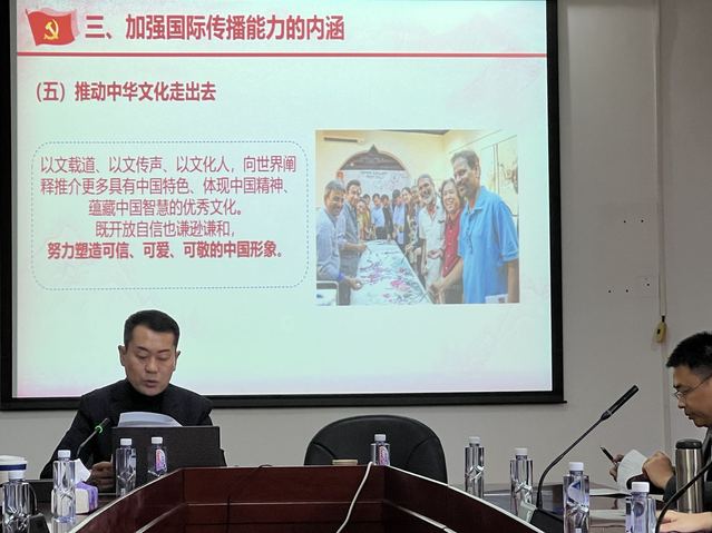语言学研究所所长倪锦诚、国别区域研究所所长刘略昌、MTI教育中心副主任杨本明等老师做主题发言。老师们结合二十大精神的学习,通过对学院外语人才培养、学科建设、对外传播、决策咨询等方面的研究,就加强国际传播能力、提升国际传播效能的意义、路径、模式等方面开展了深入的探索。