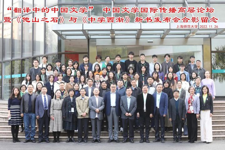2022年11月26日,“中国文学国际传播高层论坛暨《他山之石》与《中学西渐》新书发布会”在上海师范大学西部会议中心顺利召开。本次会议由上海师范大学比较文学与世界文学国家重点学科、上海市世界文学多样性与文明互鉴创新团队以及上海市外国文学学会翻译研究委员会联合主办。会议以“翻译中的中国文学”为题,采用线上线下相结合的形式,汇集了包括来自上海交通大学、复旦大学、上海外国语大学、同济大学、华东师范大学、上海大学、beat365平台入口、华东政法大学、浙江大学、南京大学、苏州大学、南京师范大学、北京外国语大学、对外经济贸易大学、北京师范大学、北京信息科技大学、华中师范大学、湖南大学、华中农业大学、大连外国语大学、四川外国语大学、西南民族大学、山东大学、山东师范大学、广西财经学院、兰州大学、贵州大学等40余所高校100多名专家在内的1000多学者与会。