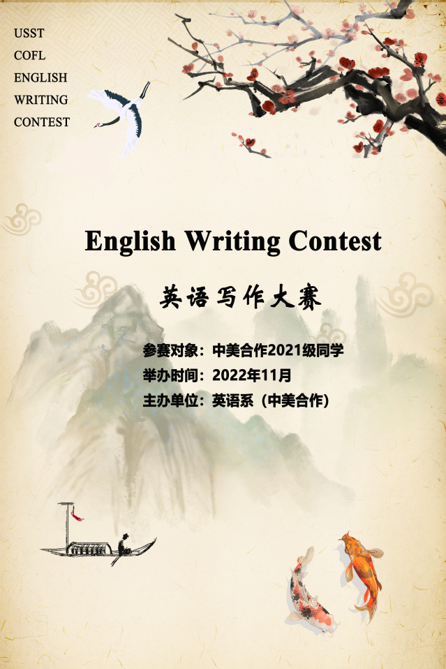 为践行“以赛促学”原则,英语系(中美合作)于2022年11月主办了英语写作大赛。参赛选手为2021级英语(中美合作)专业同学。