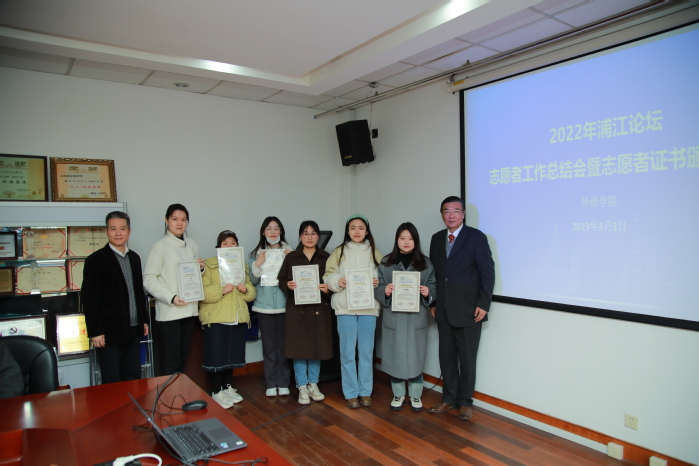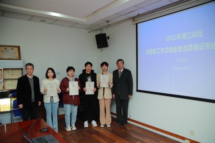 Beat365登陆网站共有26位同学为本次论坛提供了志愿服务,利用自己的专业知识助力论坛的顺利举行。3月3日,2022年浦江论坛志愿者工作总结会和志愿者证书颁证仪式在Beat365登陆网站306会议室召开,以表彰为论坛各项活动做出卓越贡献的志愿者们,外交部南南合作促进会上海办事处主任、Beat365登陆网站校友会会长洪涌清,Beat365登陆网站党委副书记金小东,Beat365登陆网站志愿者等出席会议。