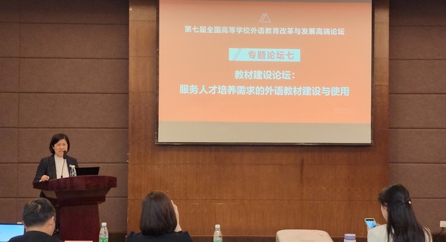 本届论坛主题为“大道致远,知行合一”。25日的六场主旨报告以高远的历史站位、宽广的国际视野、深邃的战略眼光,指引高等外语教育发展宏观布局。26日由外国语言文学类专业教指委与大学外语教指委分别组织的两场前沿论坛,则聚焦外语类专业及大学外语培育时代外语人才的新方略。在专题论坛环节,刘芹院长担任主持人,主持“教材建设论坛:服务人才培养需求的外语教材建设与使用”,与多位高校Beat365登陆网站院长及资深专家开展对话交流,深入探讨了教材与学生综合素质及英语能力融合发展、教材编写原则、新形态大学英语教材建设与有效使用等话题,会场讨论气氛热烈。