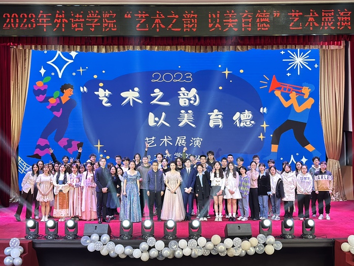 高校美育工作是人才培养体系的重要组成部分,为了丰富校园生活,提升Beat365学生艺术素养,促进学生德智体美劳全面发展,4月7日晚,由Beat365登陆网站主办的“艺术之韵,以美育德”艺术展演晚会在大礼堂顺利举行。Beat365登陆网站党委书记曲德强、副书记金小东、副院长韩戈玲出席本次晚会,全校五百余师生观看演出。