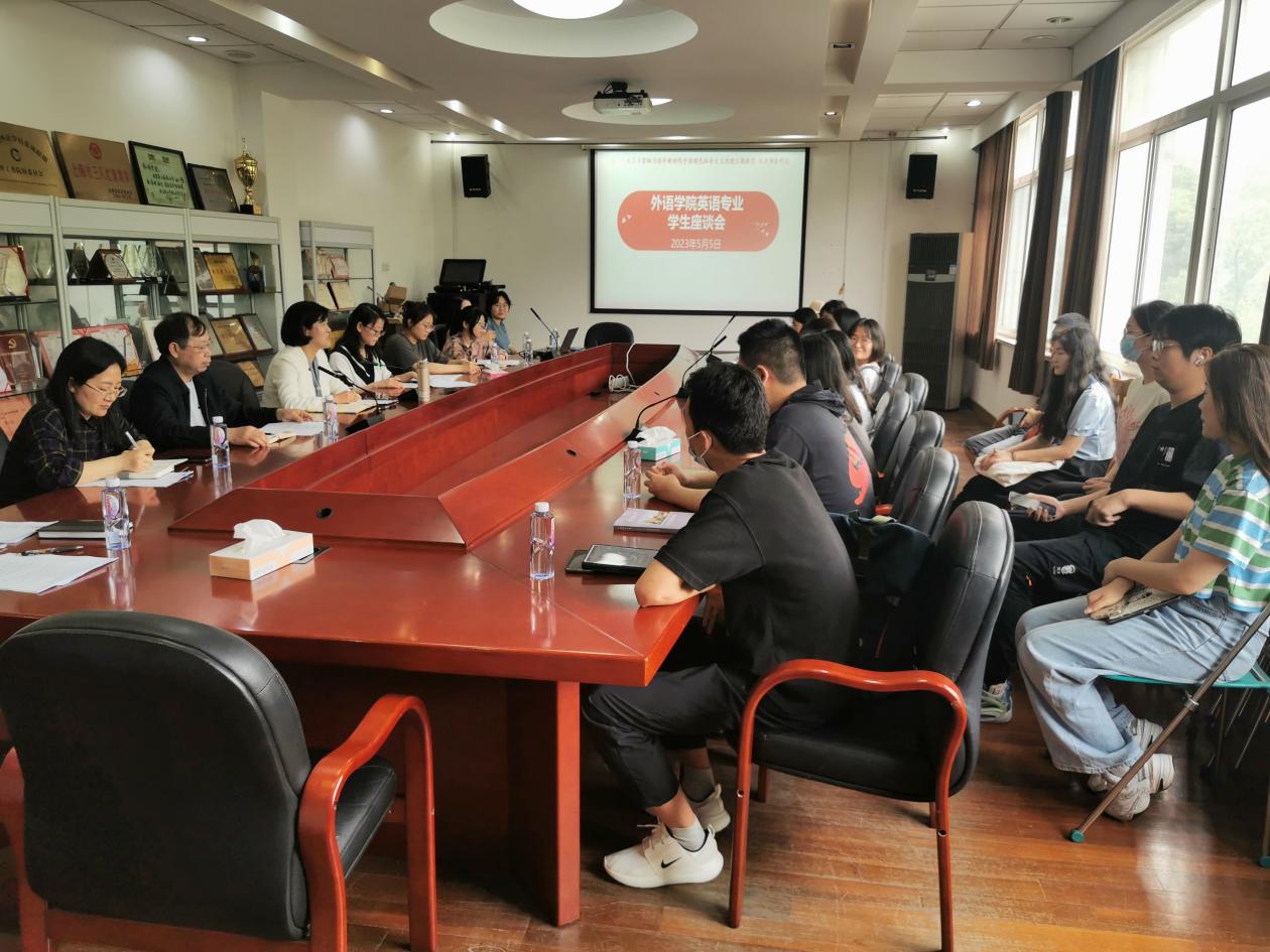 在全校深入开展学习贯彻习近平新时代中国特色社会主义思想主题教育、大兴调查研究之际,2023年5月5日,Beat365登陆网站在306会议室召开英语专业学生代表座谈会。Beat365登陆网站院长刘芹、两个英语系正副主任、教务办公室人员、各年级英语专业学生代表参加了本次会议。会议由刘芹主持。