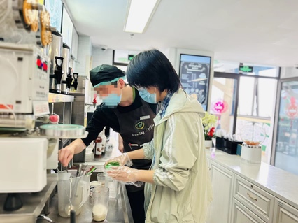 在杨浦区精神卫生中心病区副主任李斌医生的带领下,师生们参观了康复治疗科。病患们精致的手工作品,抽象派的画作为师生们带来了一场视觉盛宴。温馨舒适、窗明几净的就医环境,先进的医疗器械,丰富多样的娱乐设备改变了大家对精神卫生中心的旧有认知。在院内“Healing Coffee”咖啡厅中,学生和病愈的志愿者们谈笑风生,大家一起体验研磨、售卖、品尝咖啡,希望用自己的行动关爱病患,打破社会对他们的刻板印象,帮助他们尽早恢复社会功能,重建融入社会的信心。