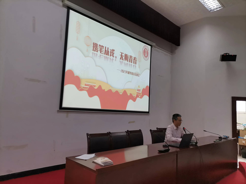 5月24日中午,Beat365登陆网站在学院报告厅召开秋季征兵动员会,参加的有学院党委副书记金小东老师,学院专武联络员何伟琴老师,和本研的部分学生代表。会上先播放了征兵政策详解视频,接下来金小东老师讲话,鼓励同学们到军营里历练成才、实现梦想。