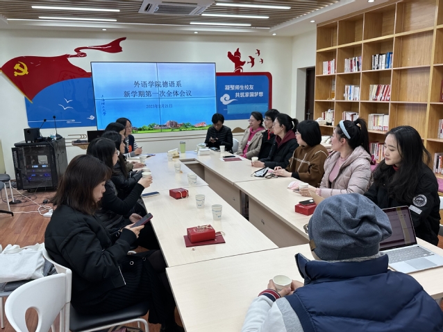 在学校和学院有关开展“大思政课”建设的精神指导下,德语系2023年度春季学期围绕“大思政课”、习近平外交思想、德语专业学生国际传播能力培养等主题召开了多次全体或部分教师参与的研讨会。