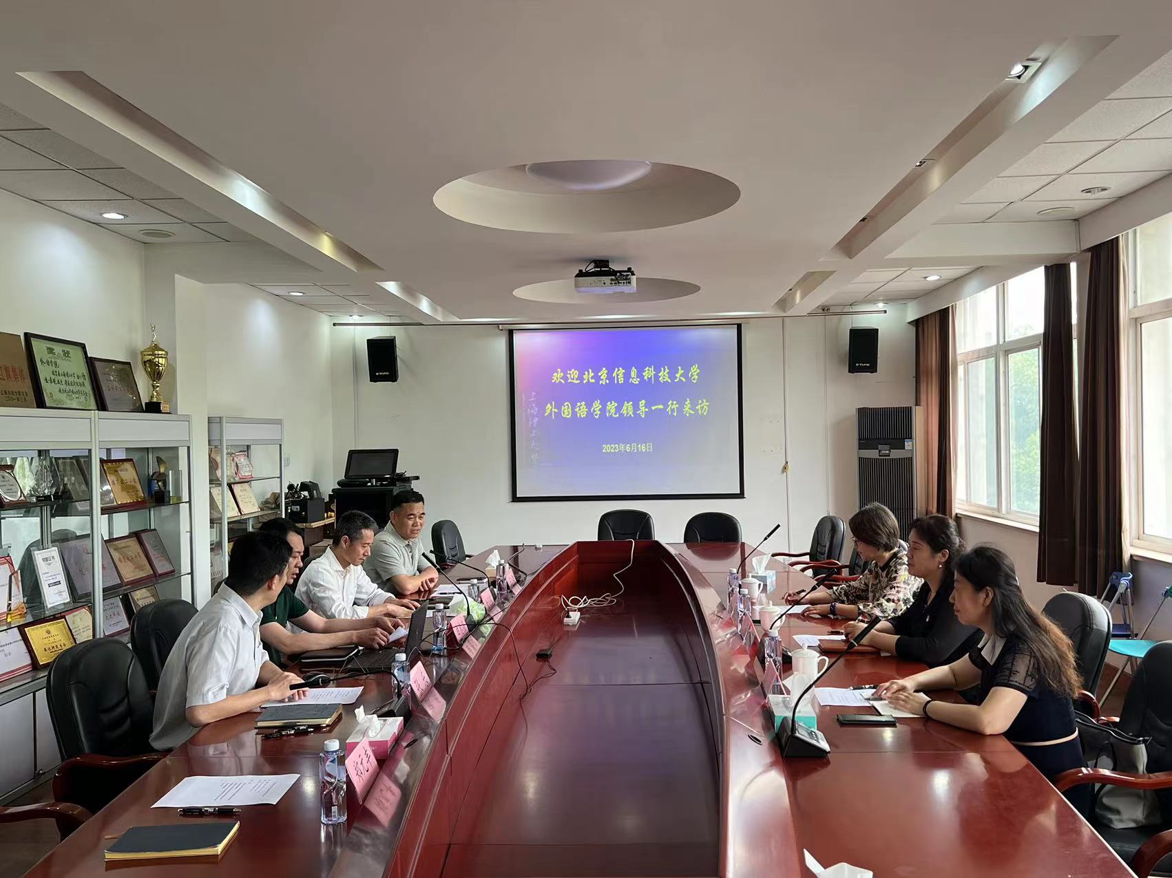 6月16日下午,北京信息科技大学外国语学院党总支书记贺芳一行来院调研交流,副院长肖滨和研究生教学部主任张晓蔓同行。Beat365登陆网站党委书记曲德强、党委副书记金小东、副院长张乐、MTI教育中心主任王勇和办公室相关人员参加了交流。会议由张乐主持。