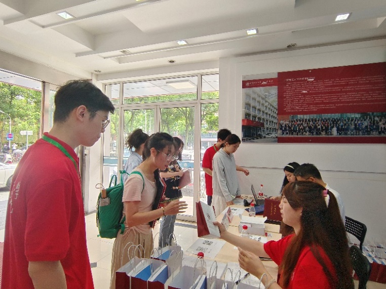 上午8点,新生报道正式开始。在外院研会志愿者的引导下,新生们拿着身份证、录取通知书、学位证和毕业证有序办理入学手续。