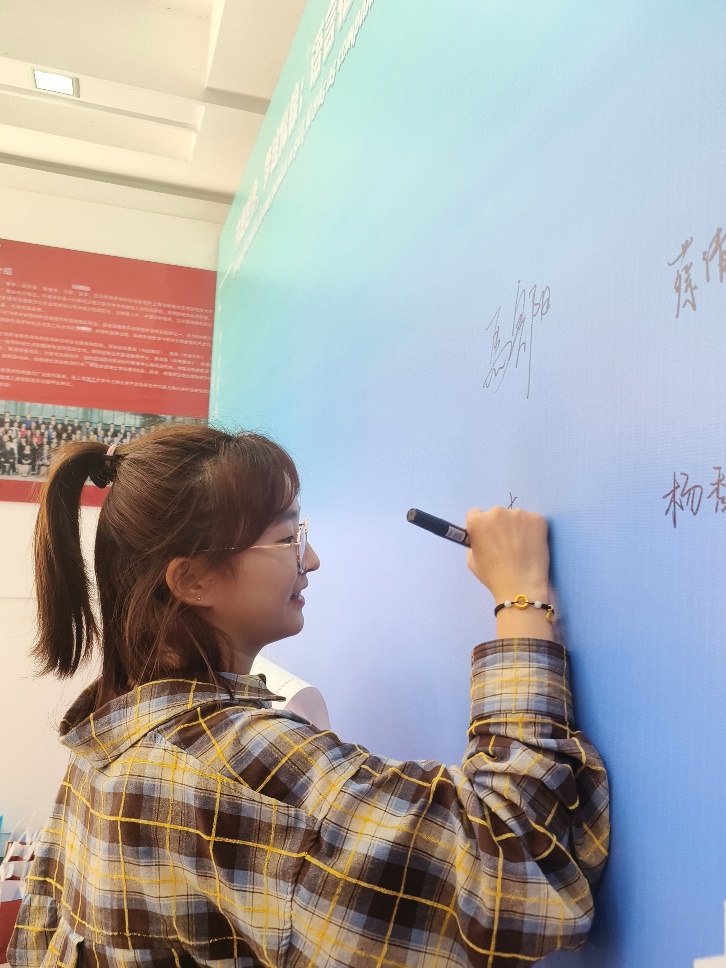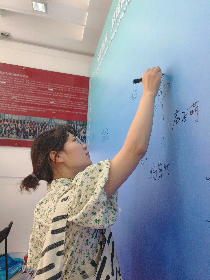 完成入学办理流程之后,新生们来到签名墙上留下自己的名字,正式开启他们与上理的故事。
