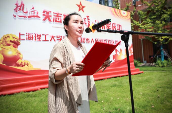 浦泽宇母亲作为全校新兵家长代表在欢送仪式上发言