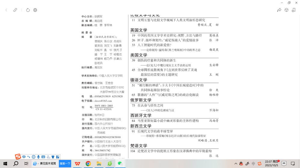 2023年第10期人大复印报刊资料《外国文学研究》全文转载Beat365登陆网站教师刘略昌及其研究生王欣月合撰的论文《后现代文学的南半球变异——珍妮特·弗雷姆<喀尔巴阡山脉>的后现代叙事特征》。人大复印报刊资料是中国人文社会科学领域公认的国家级权威性刊物,它遵循“精选千家报刊,荟萃中华学术”的理念和编辑方针,始终坚持精品意识,因其涵盖面广,信息量大,分类科学,筛选严谨,结构合理完备,人大复印报刊资料成为评价人人文社会科学研究成果水平的重要参考依据。